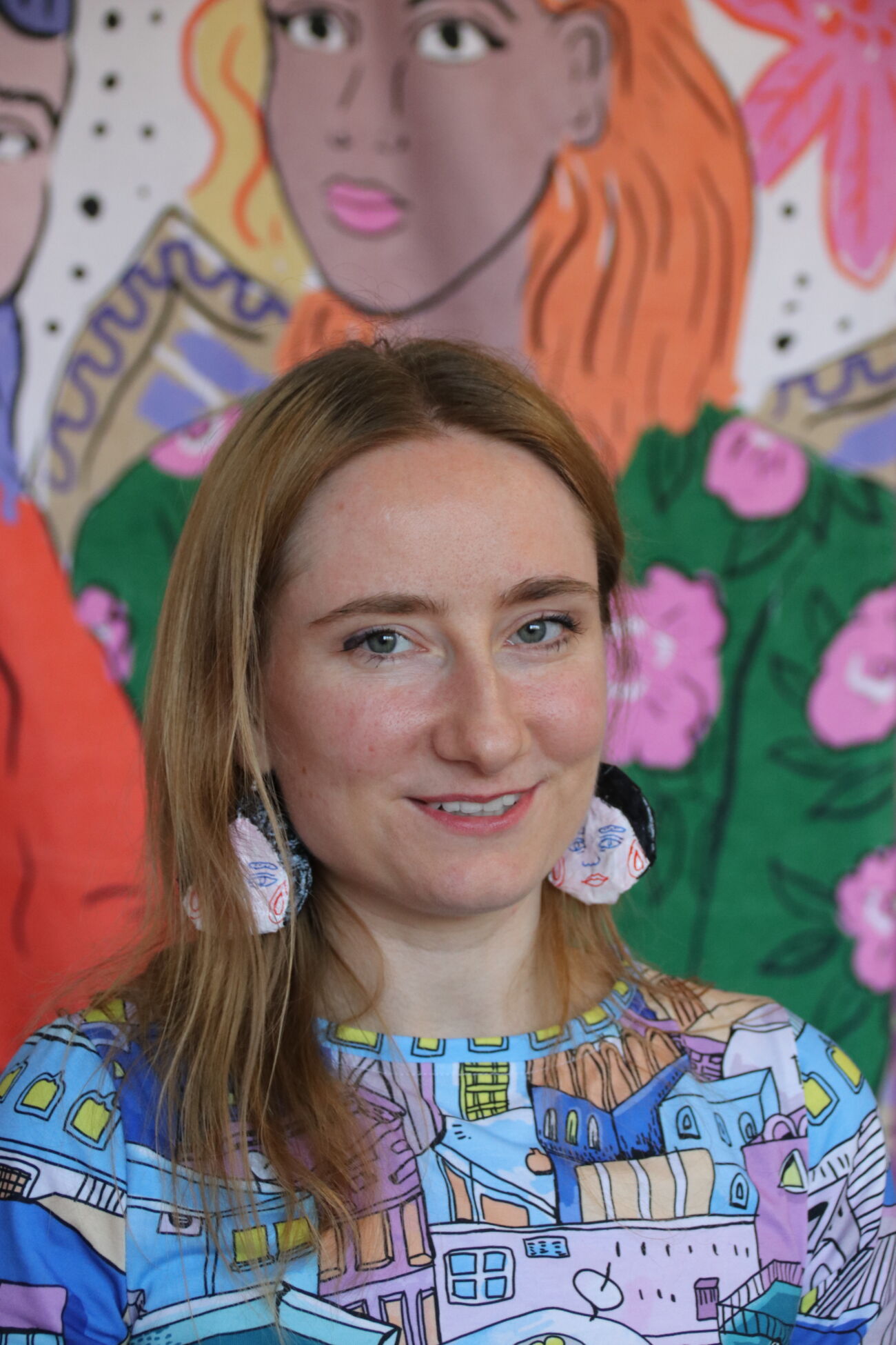 Wir sitzen in Wandas Atelier in der historischen Spielzeugfabrik der Wisa Gloria in Lenzburg. Sie teilt den Raum mit einer gerade nicht anwesenden pensionierten Zeichenlehrerin. Wandas Seite des Ateliers ist deutlich erkennbar: Ihr Stil hat einen grossen Wiedererkennungswert. Die Illustrationen, Bilder und die mit ihren Motiven bedruckten Schals, T-Shirts und Kleider sind fast schon reizüberflutend. Kunst ist Wandas bevorzugte Art der Kommunikation. Alle möglichen, kräftigen Farben und Formen treffen aufeinander und buhlen um die Aufmerksamkeit der Betrachter*innen. «Ich möchte, dass die Leser*innen in meinen Werken immer wieder Neues entdecken», sagt die Künstlerin dazu. Sie nimmt ihr 400- seitiges Buch «Bauchlandung» in die Hände – ihr erstes Comicbuch – und zeigt mir während unserer Unterhaltung immer wieder Szenen daraus. Die Freude über ihren wachsenden Erfolg, ganz besonders mit dieser Graphic Novel, ist ihr anzumerken. Ihre im Alltag erbrachten, meines Erachtens ebenso beeindruckenden Leistungen als junge Mutter und freischaffende Künstlerin jedoch sind ihr nicht so deutlich bewusst. Das merke ich schon bald.