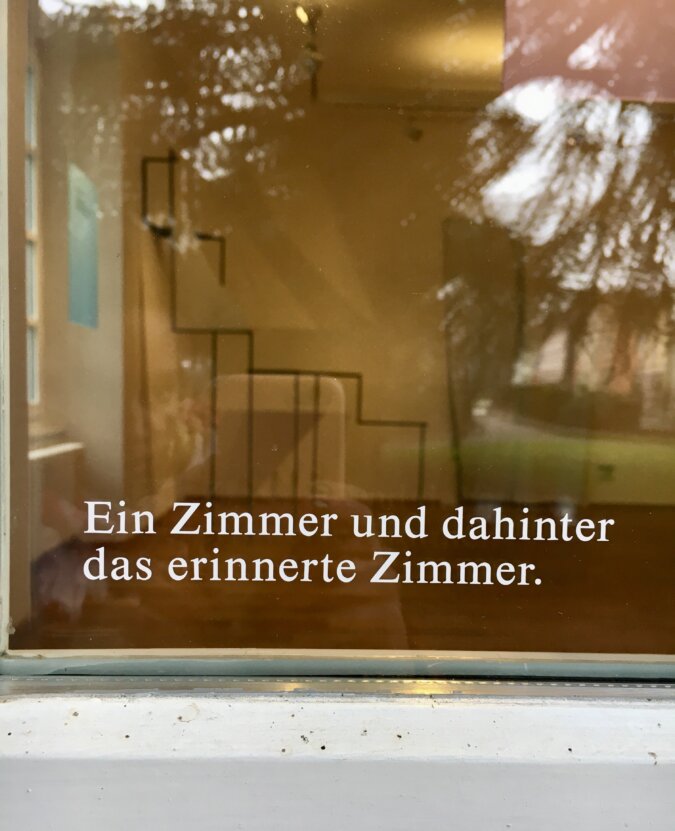 Die Parkettböden knarren bei jedem Schritt, und in jedem Raum sind sie etwas anders verlegt. Die hohen Räume bezeugen die grossbürgerliche Herkunft. Zuvor bin ich durch den Kies gewatet, habe dem Knirsch-Konzert gelauscht und die perfekt gestutzten Buchshecken bewundert. Ein Haus, in dem die Kunst wohnt; es empfängt mich mit forschen Augen, warm und wie immer etwas unnahbar. Vorsichtig taste ich mich den Wänden entlang, sehe mich um, folge den Zeichen. Hinter einem Fenster erhasche ich einen Blick auf die Aare. Schliesslich betrete ich einen verdunkelten Raum, eine Dunkelkammer, die mich an einen Walbauch erinnert, ein Bauch, in dem Poesie heranwächst. Die Sätze verfolgen mich wie Geister und nach jeder grauen Flügeltüre, durch die ich trete, wird das Geflüster lauter. Ich flüchte an ein Fenster zum Garten hin, und beisse meinen Blick ins Immergrün der Büsche, baue ein Nest, lege mich hinein und mache die Augen zu, bis das Flüstern verklingt. Als ich die Augen wieder öffne, kleben die Worte an der Fensterscheibe, sie haben sich neben mich gesetzt und es sich gemütlich gemacht. Jetzt schmiegen sie sich wie kleine Felltiere an meinen Ellbogen, und meine Scheu vor ihnen lässt nach, ich entspanne mich und breite meine Gedanken aus, wie eine Picknickdecke im Park. Mein Körper dehnt sich und fliesst in die Ritzen des Parketts. Okay, Fokus jetzt: Ich gehe von einem Raum in den nächsten, bis ich wieder am Anfang bin und die Runde von vorne beginnt. Ein Anfang ohne Ende ohne Anfang. Ich steige Treppen hoch und stelle fest: Das Treppenhaus ist ein Schneckenhaus. Hinauf in die Beletage, hinauf, ins schöne Geschoss. Die Frau vom Empfang sieht mich zirkeln und drehen, ruft mir fragend zu, was mich denn so umtreibe und ich schwöre, es sind die Wörter, die Bilder, die Metaphern und Sätze, die mich so unruhig durch das Gebäude geistern lassen. Irgendwann spuckt mich das edle Haus aus, ich stolpere über den Kies und in die kalte Luft. An der Remi- se vorbei, in deren Fassade sich eine Kletterpflanze mit ihren kleinen spitzen Zähnchen gebissen hat und mich ahnen lässt, was im Sommer hier erst los sein muss.