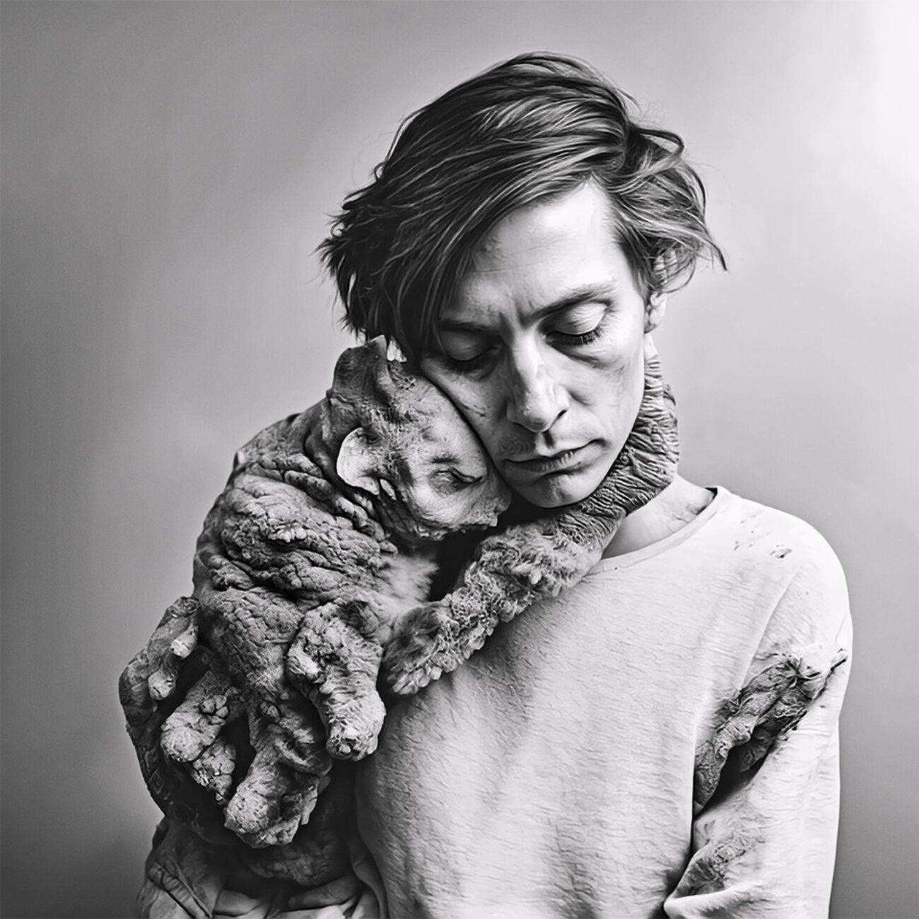 Wenn Esther Hunziker in ihren mittels KI generierten Videoporträts imaginäre Menschen und seltsame Pelzwesen zu hybriden Figuren verschmelzen lässt, geraten feste Gewissheiten in die Schwebe: Ist das menschlich, echt, oder künstlich? Was lebt hier, was nicht? Just die maschinengenerierten Bilder konfrontieren uns also mit einem alternativen Selbstbild, mit der verdrängten Ahnung, dass vielleicht Körper und Psyche als kohärente Entität bloss eine wirkmächtige Illusion sind.