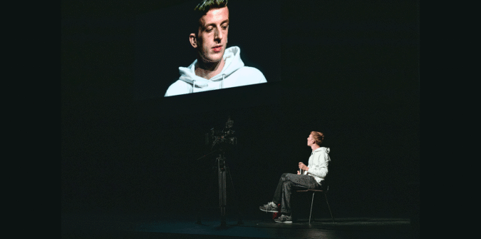 BÜHNE Milo Rau, gefeierter Theatermacher, und Édouard Louis, Bestsellerautor und Aushängeschild der neuen engagierten Literatur in Frankreich, haben gemeinsam ein Theaterstück geschrieben. Es ist ein intimer Text, der von Louis’ Leben handelt und den Rau inszeniert hat. Auf der Bühne steht ein junger, schmächtiger Mann in weissem Hoodie, Jeans und Sneakers – Édouard Louis. Ja, aber nicht leibhaftig. Louis wird vom Schauspieler Arne De Tremerie gespielt, der ihm auf den ersten Blick sehr ähnlich sieht. Die Trennschärfe von Realität und Fiktion ist in diesem Stück von Beginn an in Frage gestellt. So auch inhaltlich, wenn De Tremerie in der Rolle des Édouard Louis erzählt, dass die Schauspielerei schon seit jeher ein essenzieller Bestandteil seines Lebens war. Denn Louis ist homosexuell und wuchs in einem homophoben Umfeld auf. Aus Selbstschutz musste er daher ständig behaupten, ein anderer zu sein, als er eigentlich war. Spielen, Werden und Sein – die drei Urzustände der Schauspielerei werden in The Interrogation zum Ausgangs- und Endpunkt der biographischen Erzählung erklärt. Das Verschwimmen von Realität und Fiktion wird in diesem melancholischen Theaterabend zur Bedingung wahrhaftigen