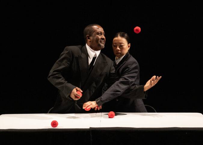 BÜHNE Hereinspaziert ins Absurditäten-Jonglage-Kabinett. Hier wachsen den Artist*innen schon mal sechs Hände, die einander Stofftücher aus den Ohren ziehen, Objekte zum Verschwinden und in anderen Formen wieder zum Erscheinen bringen. Ja, das ist das Reich, in das Sean Gandini und seine Compagnie das Publikum mitnimmt. Die Produktion «Heka», benannt nach der ägyptischen Gottheit für Magie, taucht die Bühne in ein hybrides Zwielicht, zwischen Möglichem und Unmöglichem, wo sich Humor, Philosophie und Poesie vereinen. Ab 8 Jahren. mh