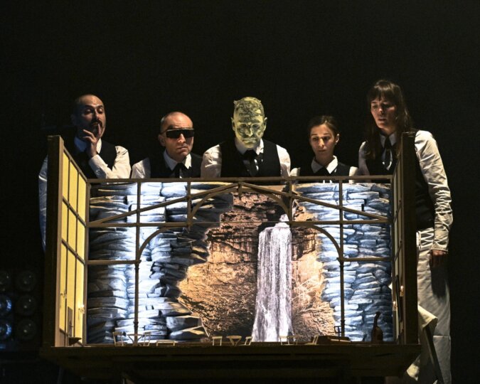BÜHNE Fünf vergessen gegangene Angestellte warten in den Ruinen eines einstigen Touristenmagnets auf Kundschaft – und lassen aus Trümmern und übriggebliebenen Instrumenten die alte Pracht des Orts wiederauferstehen. Doch Erinnerungen sind notorisch lückenhaft und widersprüchlich, und wo sind wir hier überhaupt gelandet? Ist das ein Aussichtspunkt, oder eine Sackgasse? Ein mondäner Kurort? Oder nur eine Kulisse? Thom Luz und sein Ensemble komponieren im Musiktheater «Tourist Trap» in feinster atmosphärischer Dichte – mit Glasharmonika, Laute, E-Bass und Vogelstimmen – einen Abgesang auf eine alte Welt, die an Widersprüchen zugrunde geht. phn
