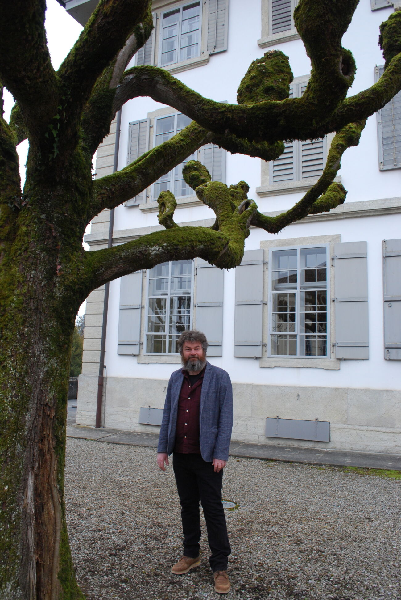 «Schreiben an sich ist ja ein absurdes Unterfangen»: Der «Wanderschriftsteller» René Frauchiger im Garten des Müllerhauses Lenzburg.