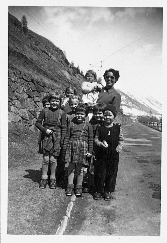 Als Kleinkind auf dem Arm einer «Schwester»: Uschi Waser im Kinderheim La Margna in Celerina, Frühjahr 1955.